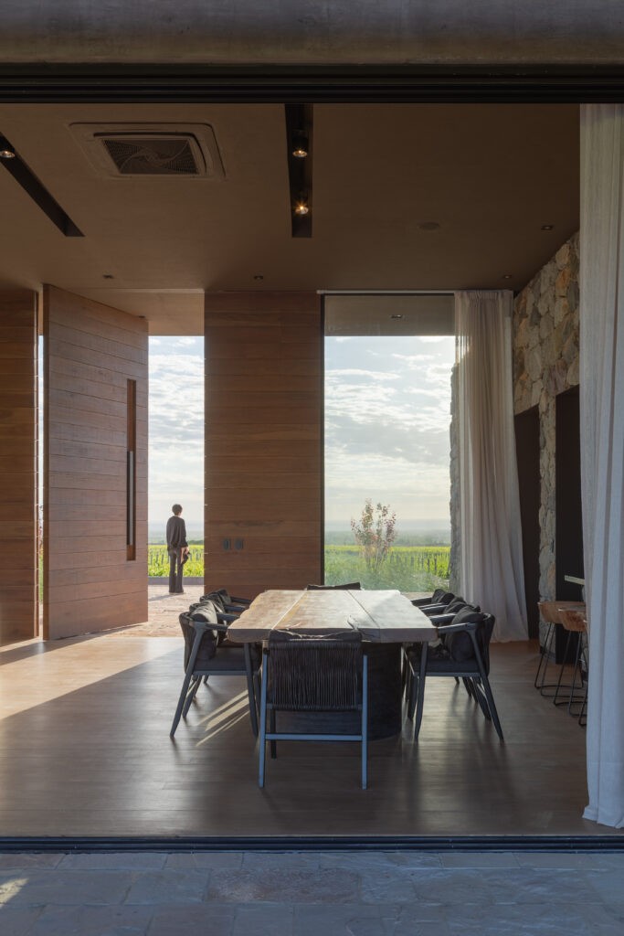 Se partió desde un concepto claro: ejecutar una construcción que marcara una presencia arquitectónica, la cual, a través del manejo de la escala, el orden geométrico y la materialidad, sintonizara en un acuerdo armónico con los viñedos y la Cordillera de Los Andes. Una villa con espacios centrales, intermedios y abiertos que permitieran una experiencia humana completa, desde la elevación y contemplación, así como de recreación y reunión social o familiar.