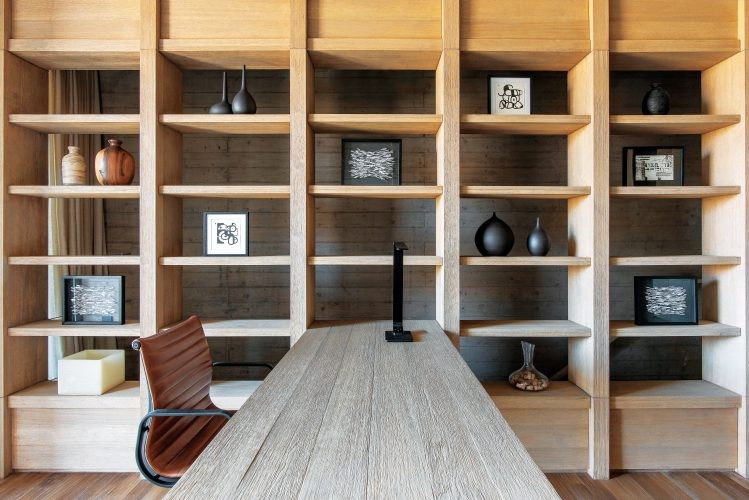 El contexto natural y la arquitectura de la casa marcaron el repertorio de texturas y colores elegidos. Una paleta cálida que hace alusión al otoño mendocino, con tonos arena, suela, marrones y toques de negro para resaltar focos de diseño. “Se jugó con varias texturas: maderas trabajadas de forma escultórica, elección de cuero en sus diferentes estados, lanas y linos que predominan en los ambientes”, expresan los profesionales de Quintana Casa.