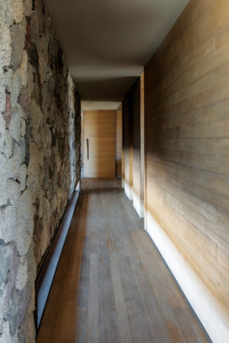 Un eje importante para esta familia de 4 personas, que viven en el exterior y buscan disfrutar cada rincón de la casa, era contar con circulación, espacios para compartir, y al mismo tiempo conservar privacidad. “Integrar el paisaje para sentir la inmensidad de la naturaleza circundante fue todo un desafío”, describe la interiorista Consuelo Delgado. “Los lugares hablan y siempre deben ser escuchados. Están compuestos por elementos físicos que direccionan conceptos y factores intangibles que nos producen sensaciones. El genius loci de la mitología romana”, agrega el arquitecto.