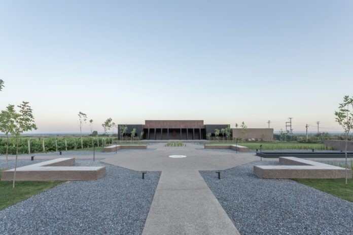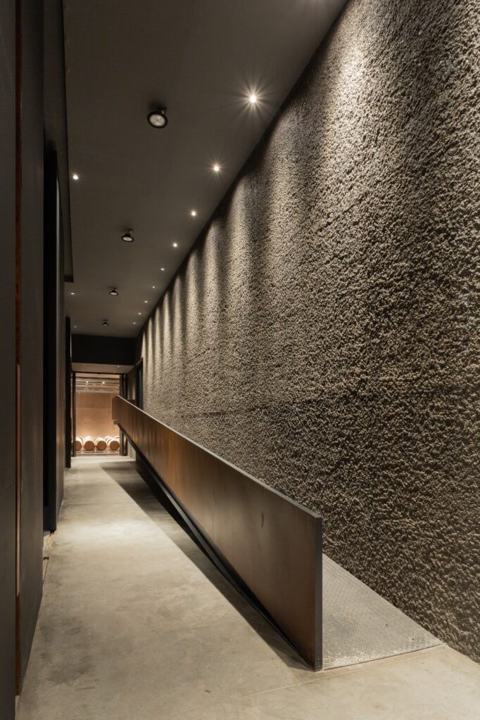 El volumen mayor es el de la bodega que, siguiendo la tradición mendocina, se interpretó como un edificio industrial y, al mismo tiempo, de carácter sacro.