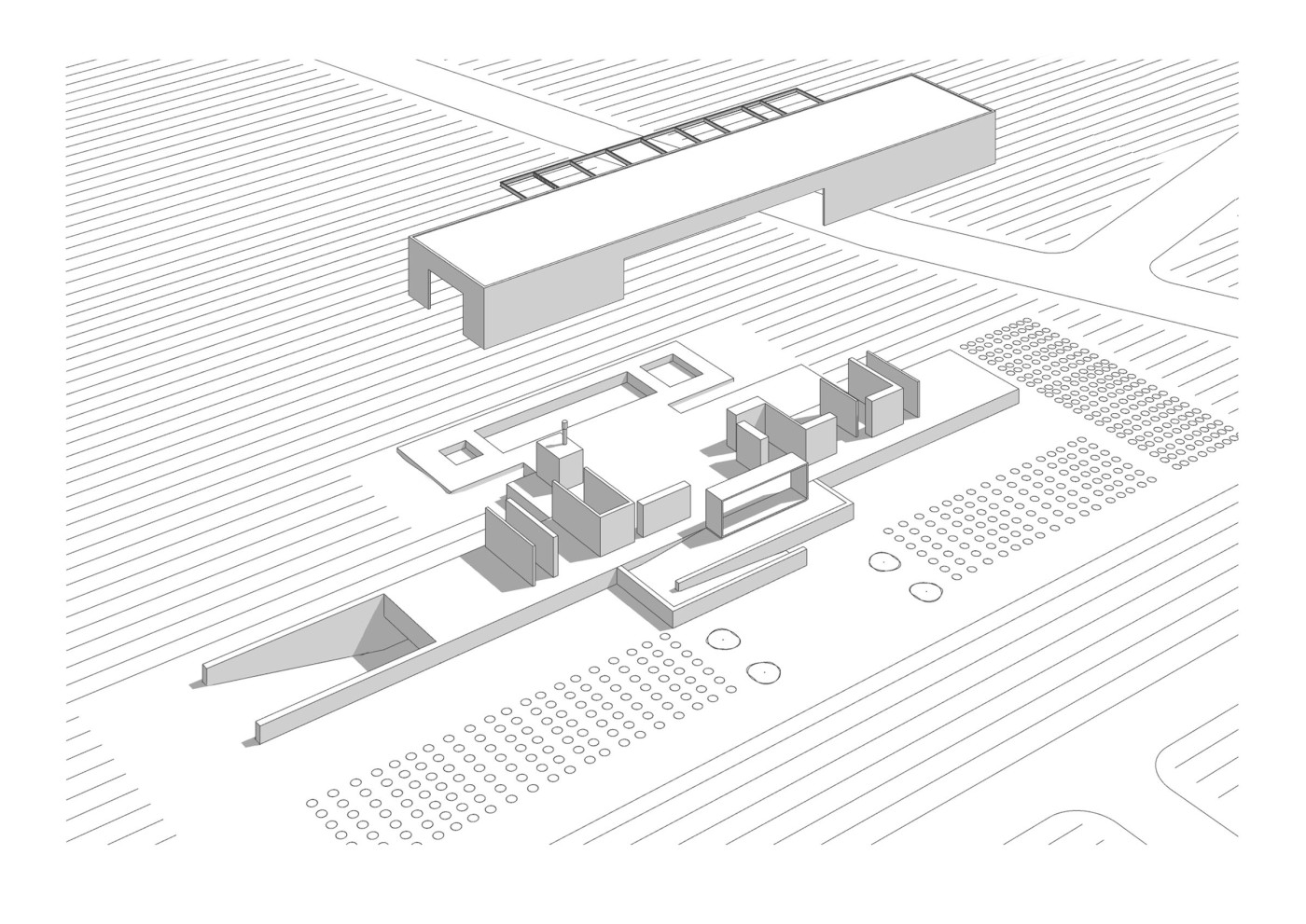 En conjunto, estos principios configuran una arquitectura que busca permanecer sin imponerse, integrarse sin diluirse. Una presencia callada, tectónica, que emerge del territorio como una extensión de su propia estructura. La composición general responde a un criterio de síntesis: lenguaje geométrico, proporciones que responden a la antigua noción de número como principio de belleza y equilibrio entre opacidad y transparencia.